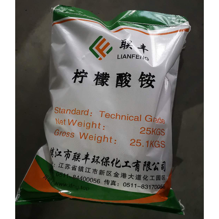 檸檬酸銨主要用于化工分析,工業(yè)水處理,金屬清洗(石油管道清洗),陶瓷分散劑、助滲劑,洗滌劑原料、及土壤改良劑組分,還用于醫(yī)藥、電子等工業(yè)。分析化學(xué)中用作化學(xué)試劑,如肥料中磷酸鹽的測(cè)定,測(cè)定磷酸鹽及化肥中有效磷酸。電鍍工業(yè)用作無(wú)氰電鍍絡(luò)合劑。機(jī)械工業(yè)用于配制防銹劑。在食品工業(yè)中作緩沖劑、乳化劑等。EEC主要用于干酪加工。